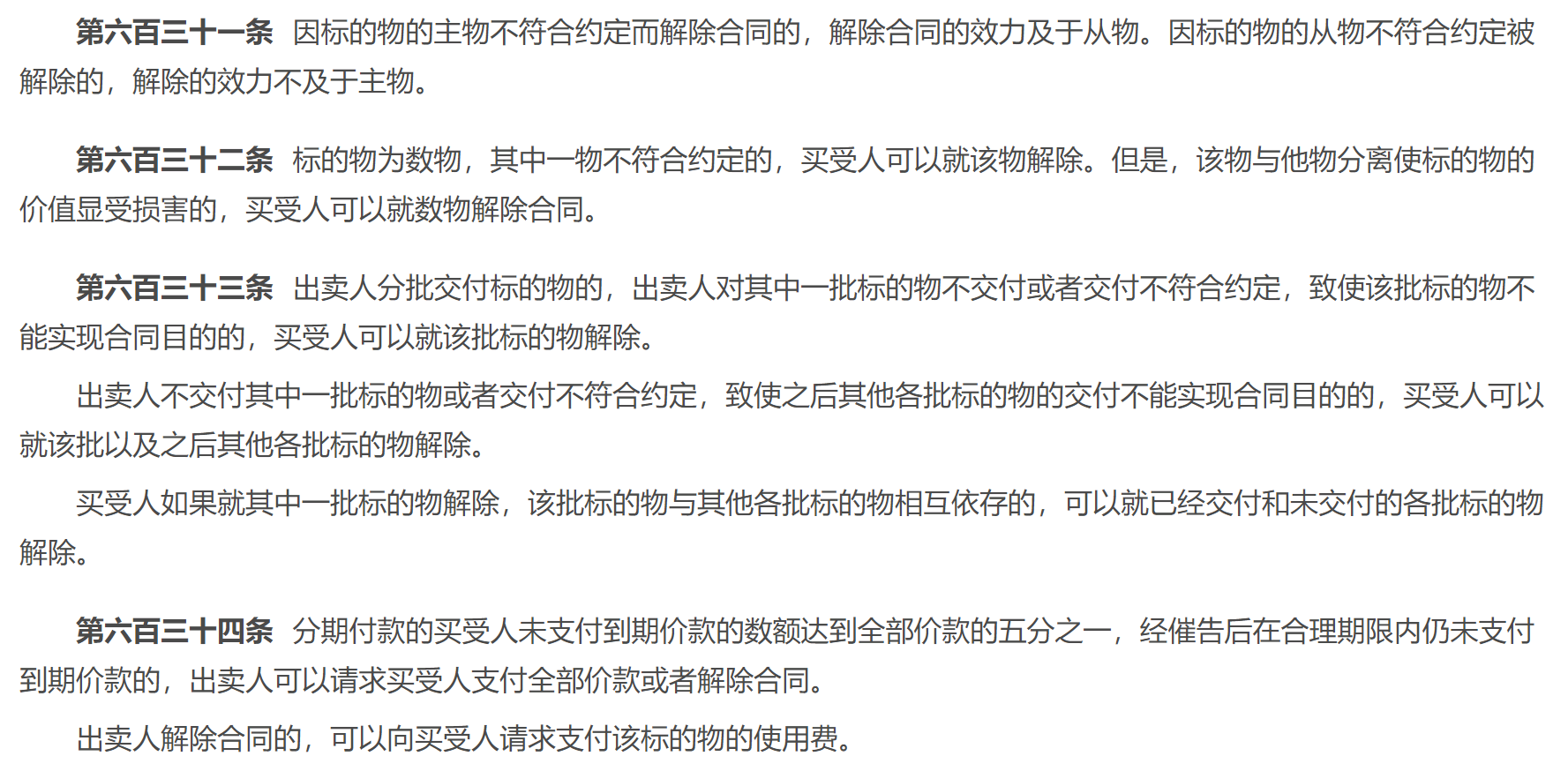 三、分批交付的買賣合同解除