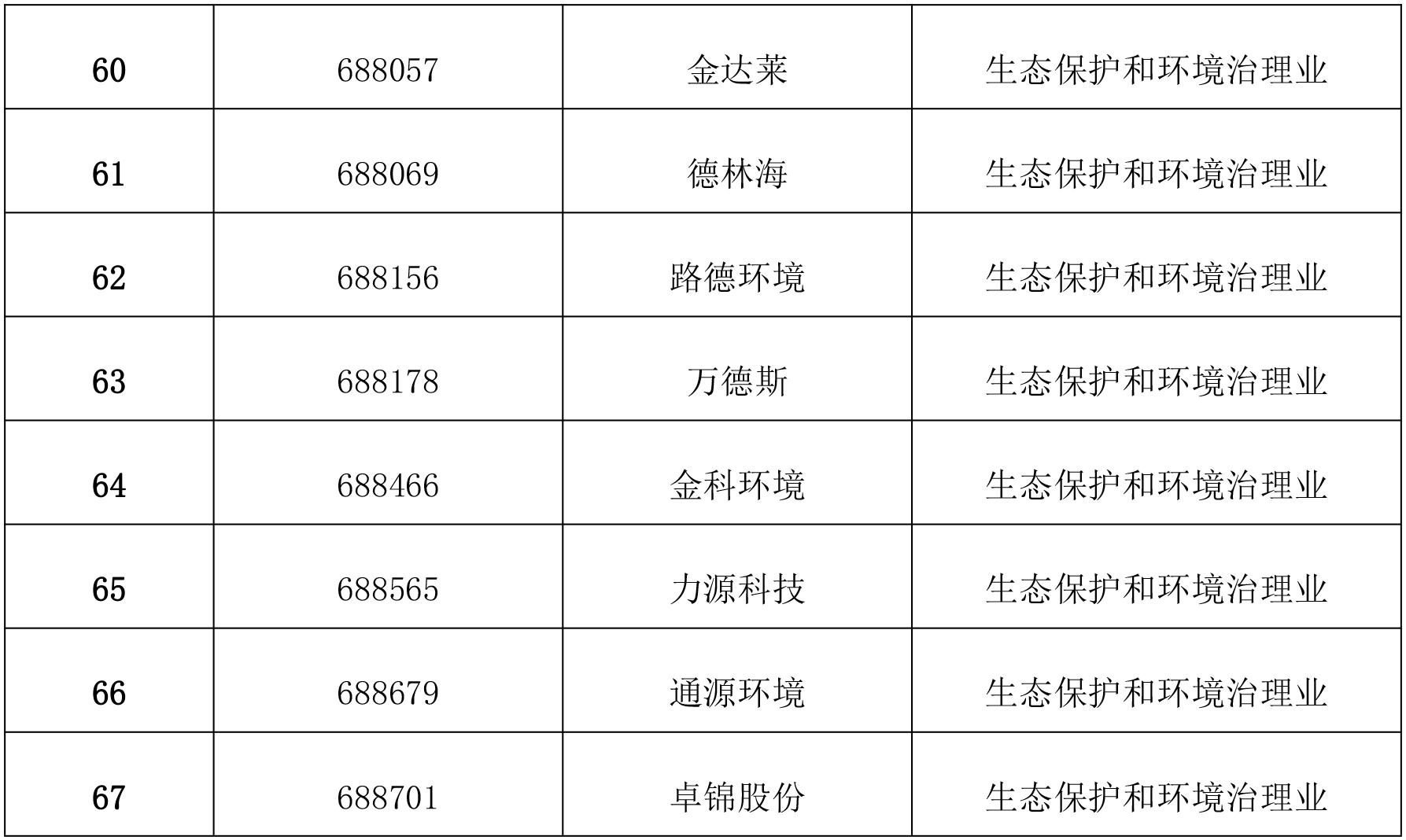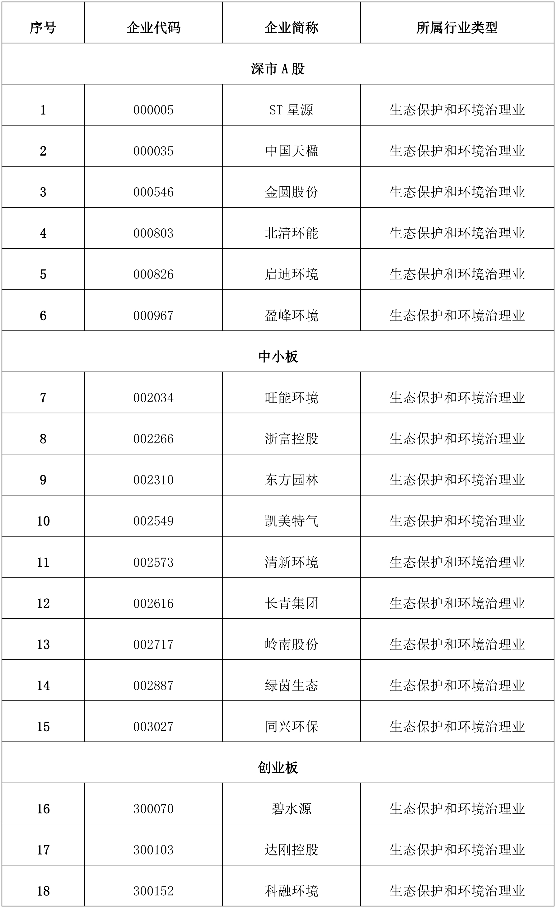 根據(jù)中國(guó)證券監(jiān)督管理委員會(huì)官網(wǎng)公布的最近一期上市公司行業(yè)結(jié)果分類,作為生態(tài)保護(hù)和環(huán)境治理類的企業(yè)如下: