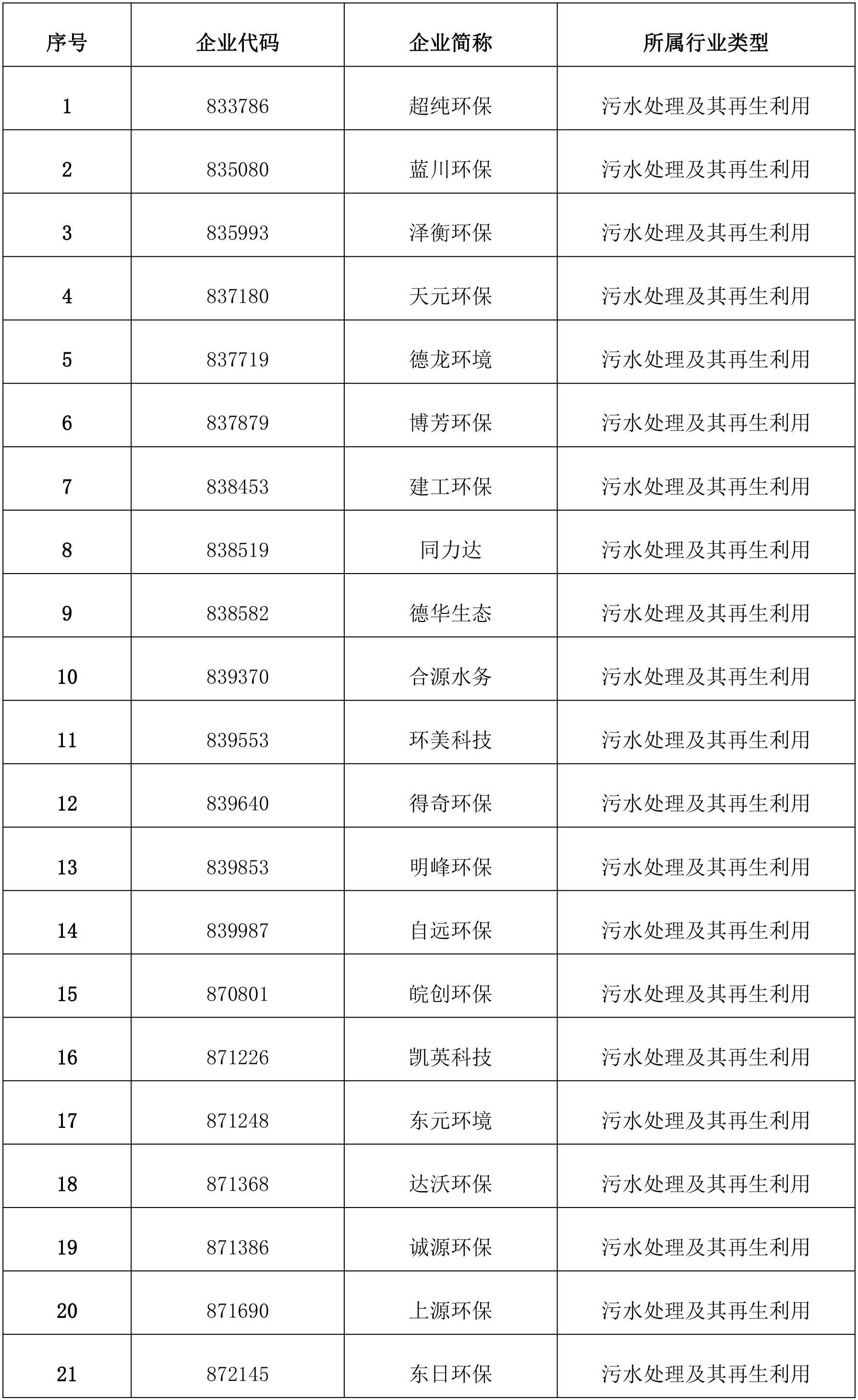 二、全國(guó)中小股轉(zhuǎn)系統(tǒng)掛牌污水處理成長(zhǎng)型企業(yè)