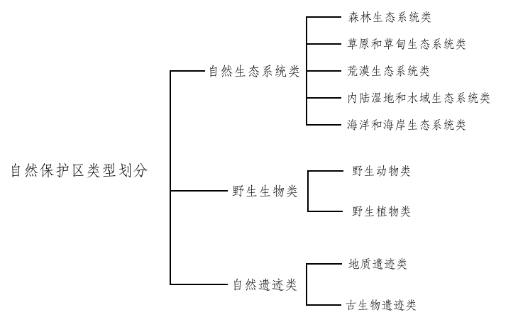 根據(jù)自然保護(hù)區(qū)的主要保護(hù)對(duì)象,自然保護(hù)區(qū)可分為三個(gè)類別九個(gè)類型: