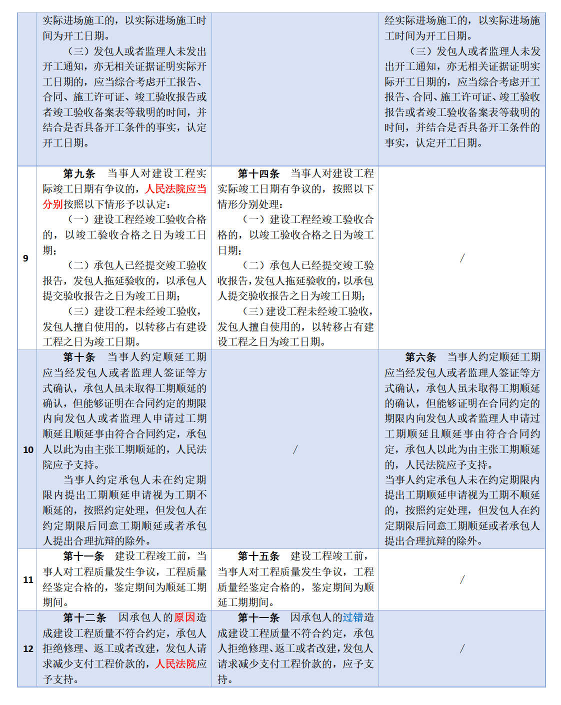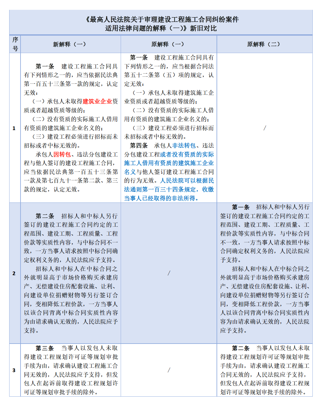 新解釋(一)與原解釋(一)(二)對(duì)照表