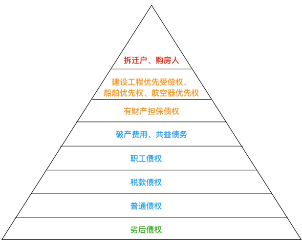 注:本文圖中關(guān)于債權(quán)清償?shù)捻樞虿⒉槐厝皇瞧飘a(chǎn)程序中的絕對(duì)順位,具體債權(quán)順位需要管理人結(jié)合債權(quán)人申報(bào)材料,依法予以審查確認(rèn)。