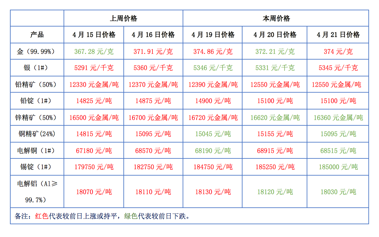 下表為本周金、銀、鉛、鋅、銅、鋁等主要有色金屬礦產(chǎn)品價格變動情況: