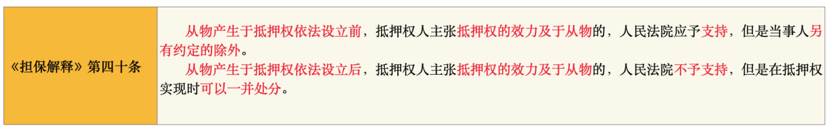 解析:抵押物并非固定永久存在,可能會被添附、征收。因此,當發(fā)生糾紛時,對于抵押權(quán)效力范圍的認定,將直接影響抵押物被處置后債權(quán)人優(yōu)先受償?shù)膬r款數(shù)額。