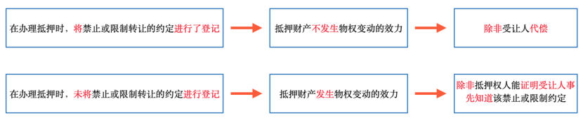 結(jié)論:①轉(zhuǎn)讓合同有效。②原則上將禁止或限制轉(zhuǎn)讓抵押的約定進行登記后,不發(fā)生物權(quán)變動效力;未將禁止或限制轉(zhuǎn)讓抵押的約定進行登記的,發(fā)生物權(quán)變動效力。
