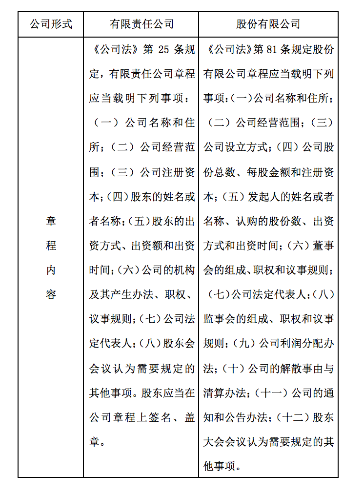 公司章程是指公司所必備的,規(guī)定公司名稱、宗旨、資本、組織機(jī)構(gòu)等隊(duì)內(nèi)對(duì)外事務(wù)的基本法律文件。根據(jù)《公司法》第11條規(guī)定,設(shè)立公司必須依法制定公司章程。公司章程對(duì)公司、股東、董事、監(jiān)事、高級(jí)管理人員具有約束力。董事、監(jiān)事、高級(jí)管理人員超越章程規(guī)定的權(quán)限發(fā)生的行為,為保護(hù)善意第三人,認(rèn)可該行為的效力,但是公司可以向該行為的發(fā)生人進(jìn)行追償。下表為有限責(zé)任公司和股份有限公司章程的內(nèi)容的比較: