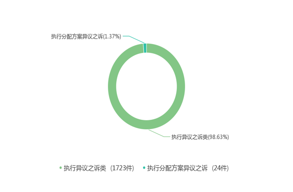 從法院確定的案由來看,執(zhí)行異議之訴當前的案由分布由多至少分別是執(zhí)行異議之訴,執(zhí)行分配方案異議之訴。