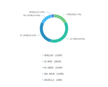 從審理期限可以看到,執(zhí)行異議之訴的審理時間更多處在31-90天的區(qū)間內(nèi),平均時間為118天。
