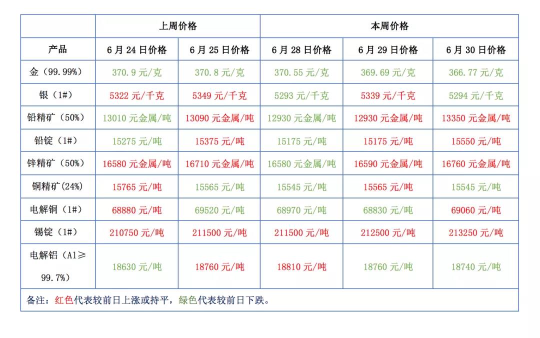 金、銀、鉛、鋅、銅、鋁等主要金屬本周報價