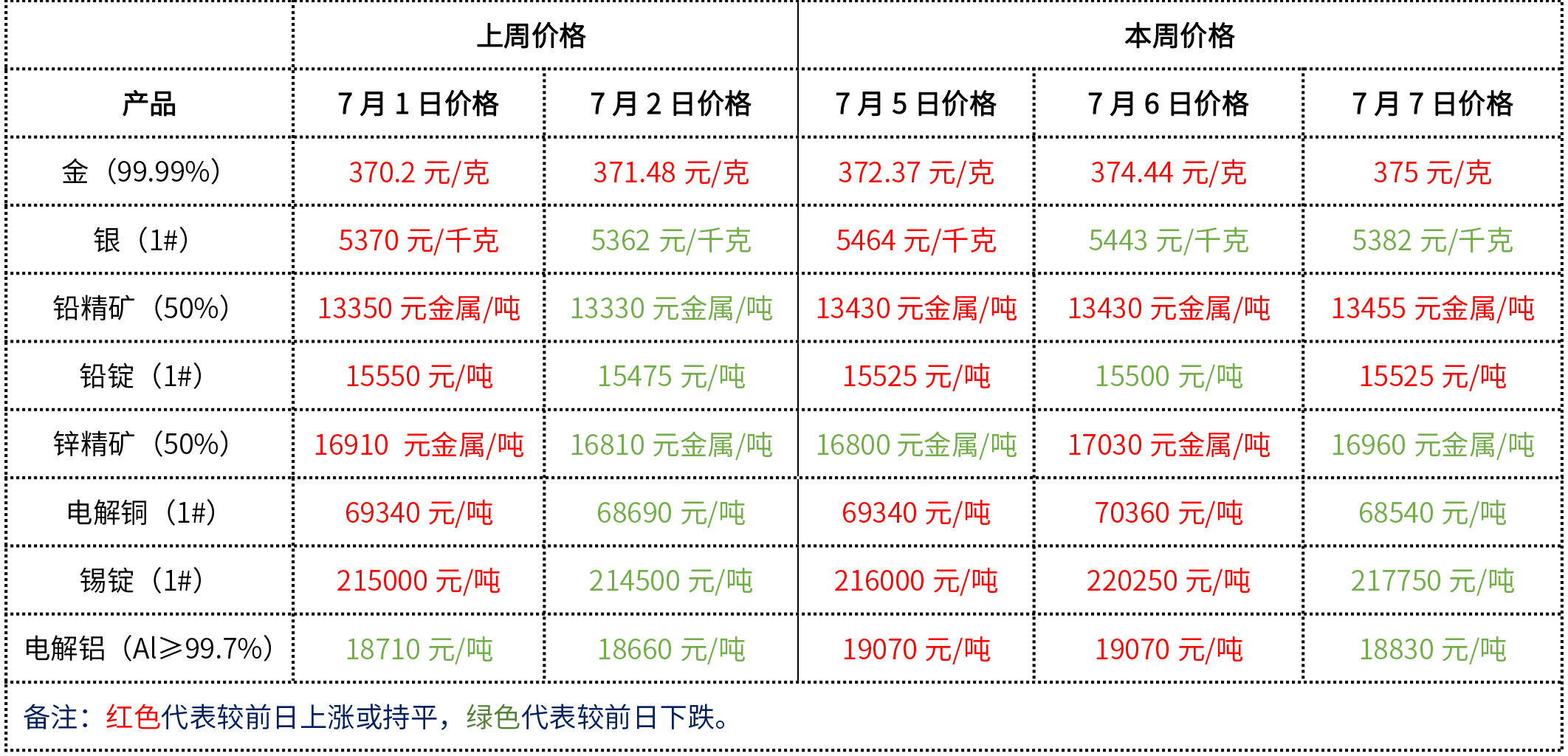 七月第二周的條條礦況又如期與大家見(jiàn)面啦!