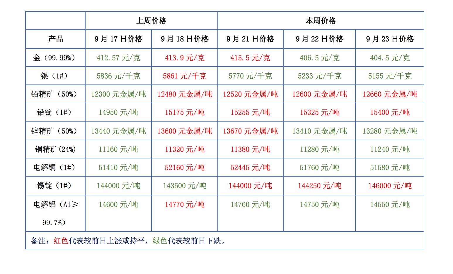 下表為本周金、銀、鉛、鋅、銅、鋁等主要有色金屬礦產(chǎn)品價格變動情況: