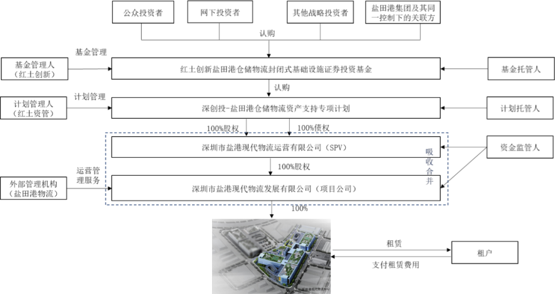 以紅土創(chuàng)新鹽田港REIT為例,經(jīng)檢索巨潮咨詢網(wǎng)(http://www.cninfo.com.cn/),紅土創(chuàng)新鹽田港REIT的交易結(jié)構(gòu)如下: