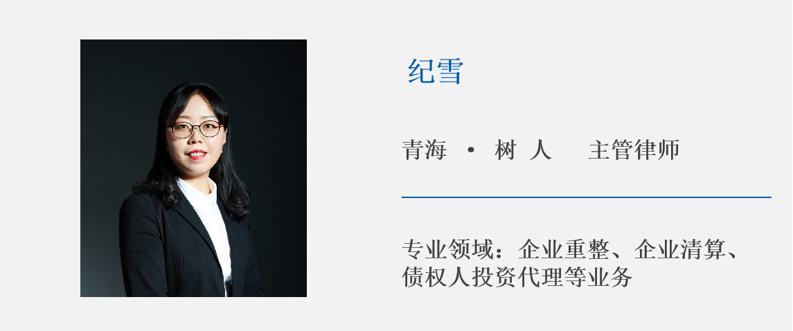 紀雪律師系青海省律師協(xié)會非訴訟專業(yè)委員會委員,并購部主管律師。主要從事企業(yè)重組、資產(chǎn)重組、企業(yè)破產(chǎn)重整、收購兼并等法律服務。近年來,主要參與承辦了賢成礦業(yè)公司重整、青海水泥股份清算轉(zhuǎn)重整、晟暉新能源清算轉(zhuǎn)和解、西寧市國新投資控股有限公司破產(chǎn)清算、青海創(chuàng)新礦業(yè)破產(chǎn)重整及破產(chǎn)清算、青海匯泰醫(yī)藥破產(chǎn)清算、哈木鐵路破產(chǎn)清算、蜀信房地產(chǎn)重整等多個破產(chǎn)及重整案件。同時參與了西部礦業(yè)職工股規(guī)范、青海東臺吉乃爾鋰資源整合及股份公司設立等項目。